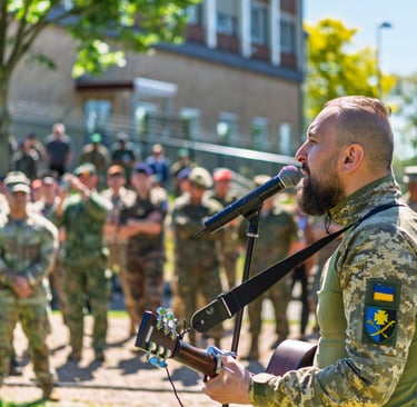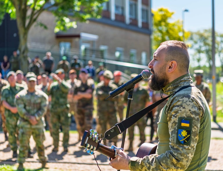 De 44e Brigade is een nieuwe eenheid die is opgericht in 2023 en is opgeleid in Polen door het westen. De brigade verdedigt met name een deel van de noordelijke frontlinie, nabij Koepjansk. De musici die dienen bij de 44e brigade werken in wat we noemen de "hete gebieden" van Oekraine. Ze keerden een maand voor aanvang van deze tour terug van het front om de repetities te starten.
