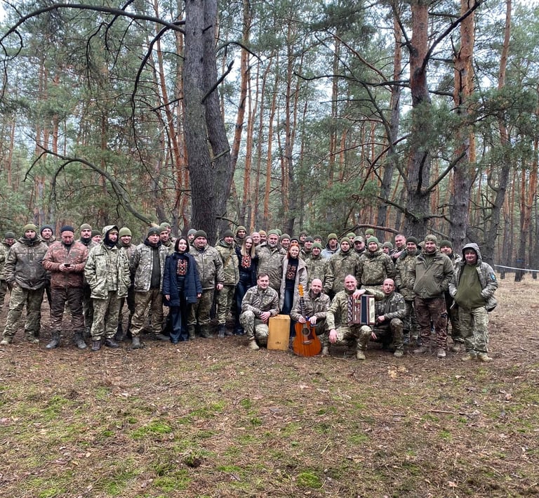Feitelijk ziet u een samensmelting van twee orkesten: het muziekorkest van de 44e brigade en musici van het Militaire Muziekcentrum van de Oekraïense Landmacht. De muzikanten die dienen in de 44e brigade zijn grotendeels van hun tijd te vinden in de hete gebieden van Oekraïne, dichtbij de zogenaamde "nul-lijn", ofwel het front. Een van hun taken is het versterken van de moraal van de troepen door het maken van muziek, maar evengoed kunnen er andere taken worden opgelegd. De musici van de 44e brigade keren een maand voordat de tour in België en Nederland begint terug van het front om zich voor te bereiden.